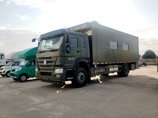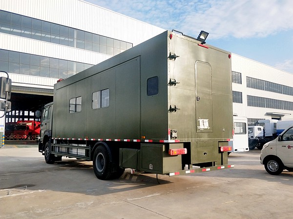 宿營(yíng)車上,設(shè)置了床位,衛(wèi)生間,**用空調(diào),換氣逃生窗口,高原灶,抽油煙機(jī),衛(wèi)星電視,煙霧傳感器,發(fā)電機(jī),照明設(shè)備,暖風(fēng)機(jī),保險(xiǎn)柜等。這輛車廚房,衛(wèi)生間,床鋪一應(yīng)俱全,保證了野外住宿的舒適性,使官兵更好的執(zhí)行野外任務(wù)。